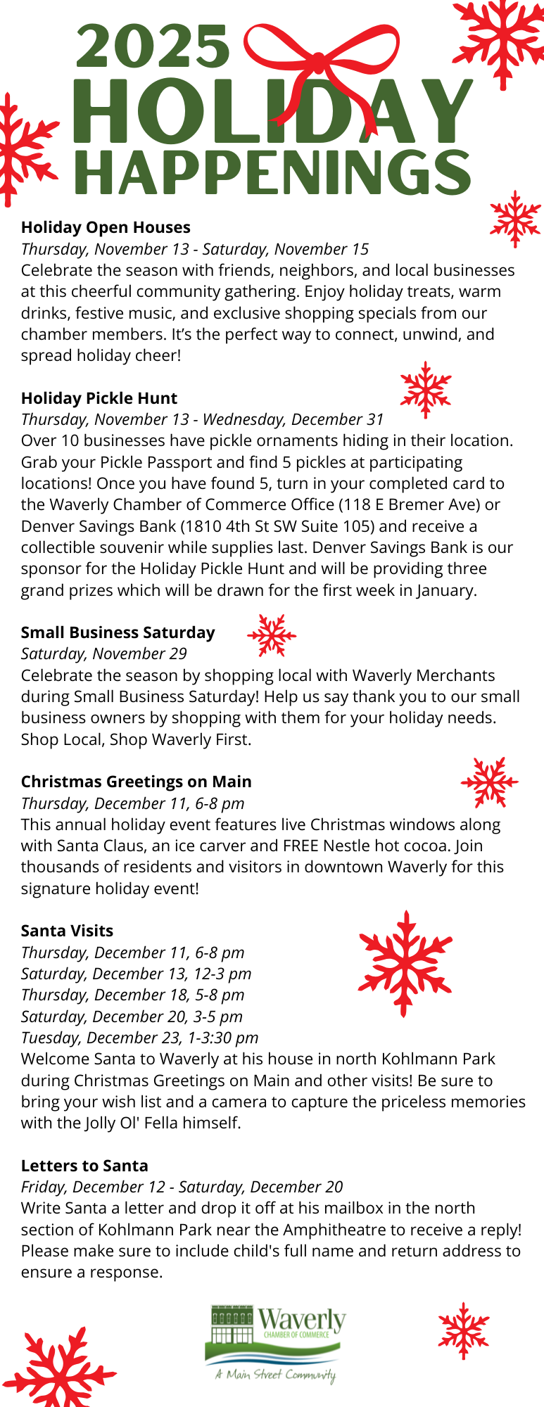 The holidays in Waverly are not to be missed! We have compiled some of the best events happening in Waverly in November and December to help you celebrate the holidays with your family and friends. Save this information, and add some festive fun to your celebrations this year!