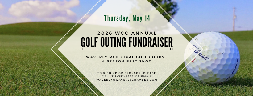Join us Thursday, May 14 at the Waverly Municipal Golf Course for our annual Chamber Golf Outing fundraiser! Enjoy a great day of golf, networking, and fun with local business leaders. Please note the change in start time this year.