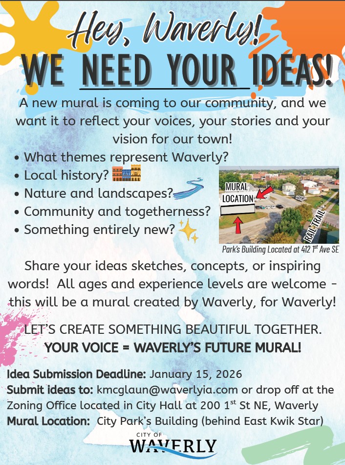 Share your vision for what should be featured on the mural by emailing kmcglaun@waverlyia.com.