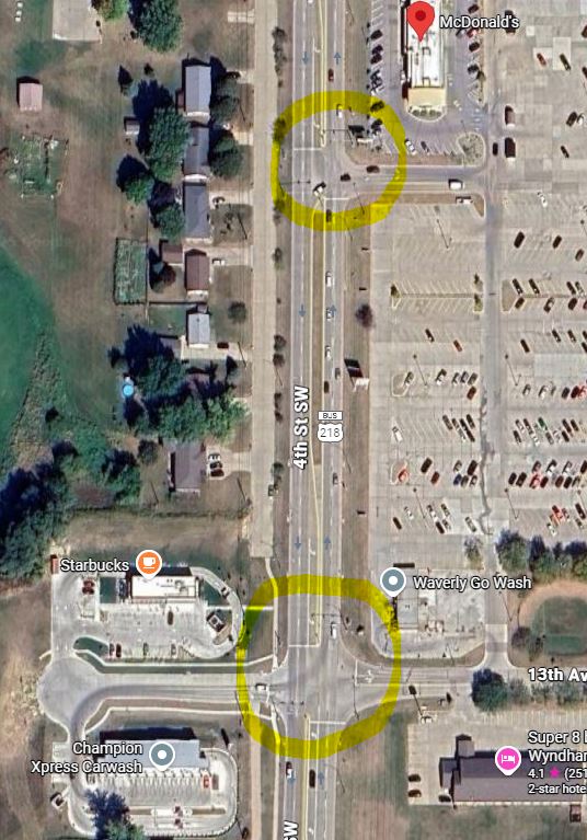 Crews are scheduled to work on the traffic signals on 4th Street SW on Friday morning at 9:00 a.m.  Work will take place at the intersection by Mc?Dona lds and the intersection by Starbucks and Hy-Vee.  Traffic will be reduced to one lane in each direction while work is being completed.  This may cause traffic delays.  Please exercise caution.